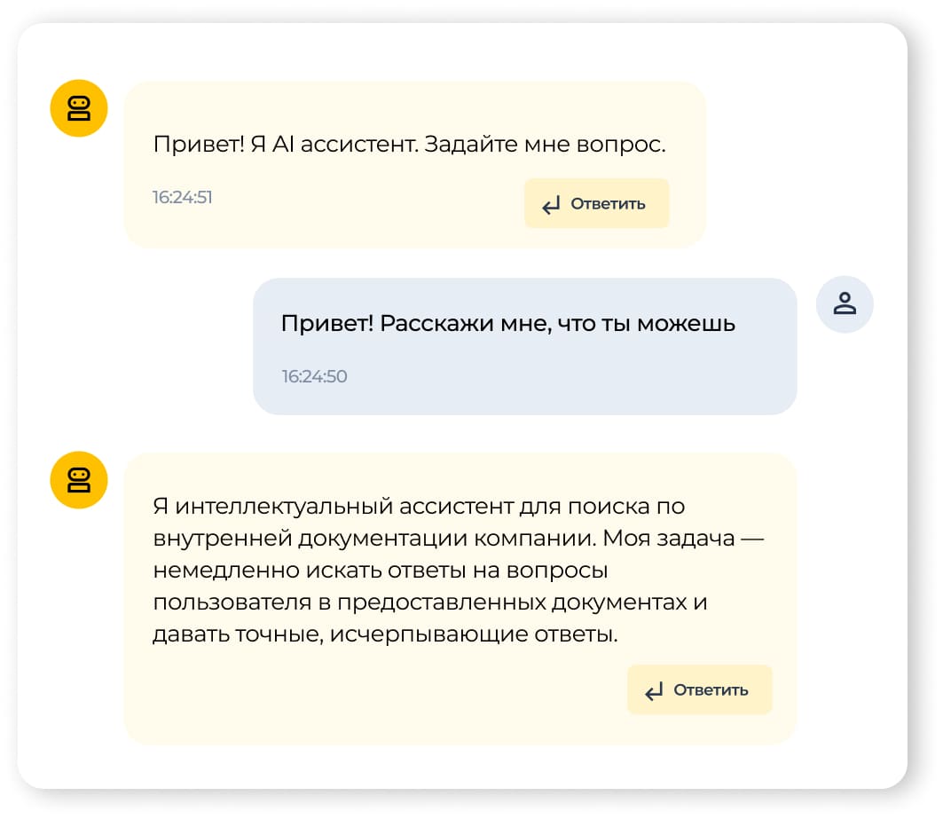 Встроенный ИИ-ассистент на базе LLM-модели общается с пользователями на естественном языке, анализирует процессы, генерирует SQL-запросы, проводит семантический поиск, позволяет выявлять ошибки и задвоения в данных, анализировать их. Пользователи могут работать с большим объемом данных без специальных знаний в области программирования или БД.
