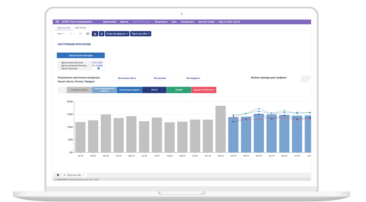 Автоматизация и ускорение процесса прогнозирования продаж на базе Optimacros с применением встроенных алгоритмов на Python.