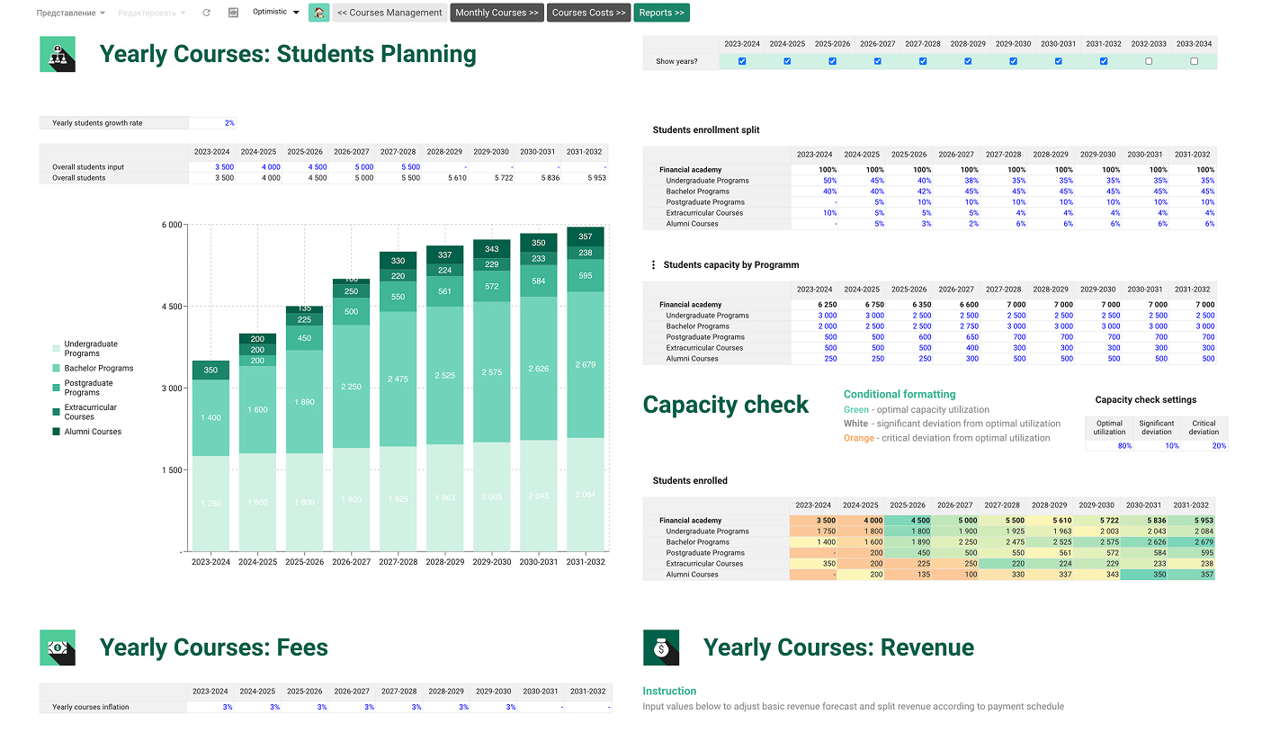 Модель предназначена для автоматизации процессов планирования в образовательной организации, начиная с управления ресурсами и предметной матрицей и заканчивая сценарным планированием и анализом