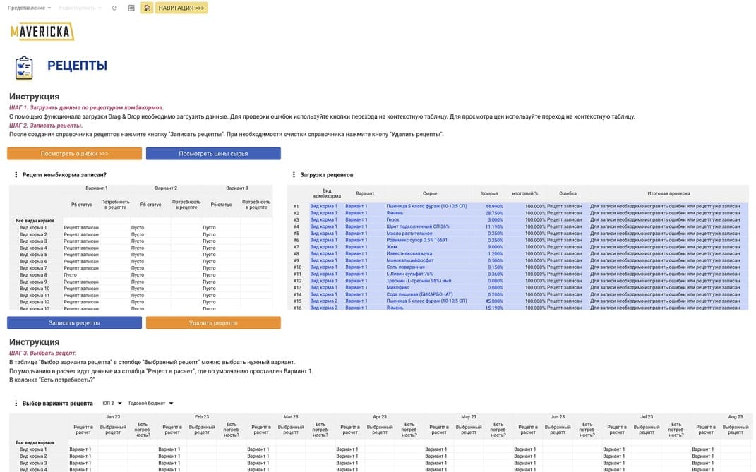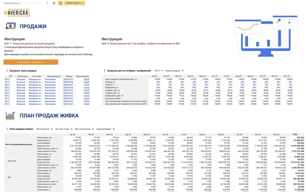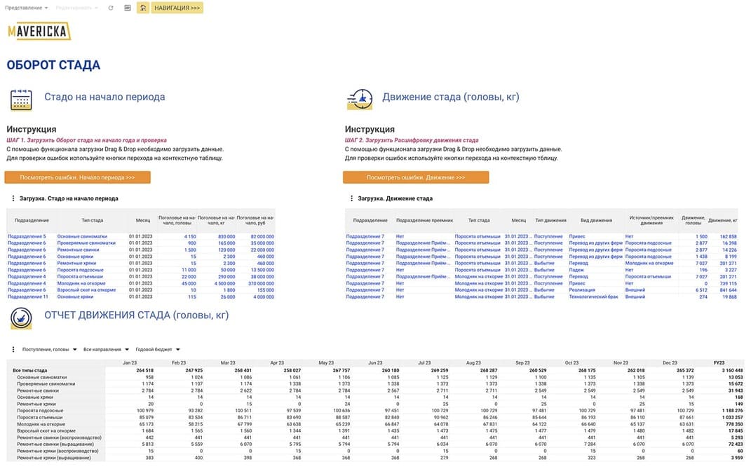 Модель создана для сбора бюджета группы животноводства: расчета производственной себестоимости, расчета себестоимости движения стада и бюджета продаж